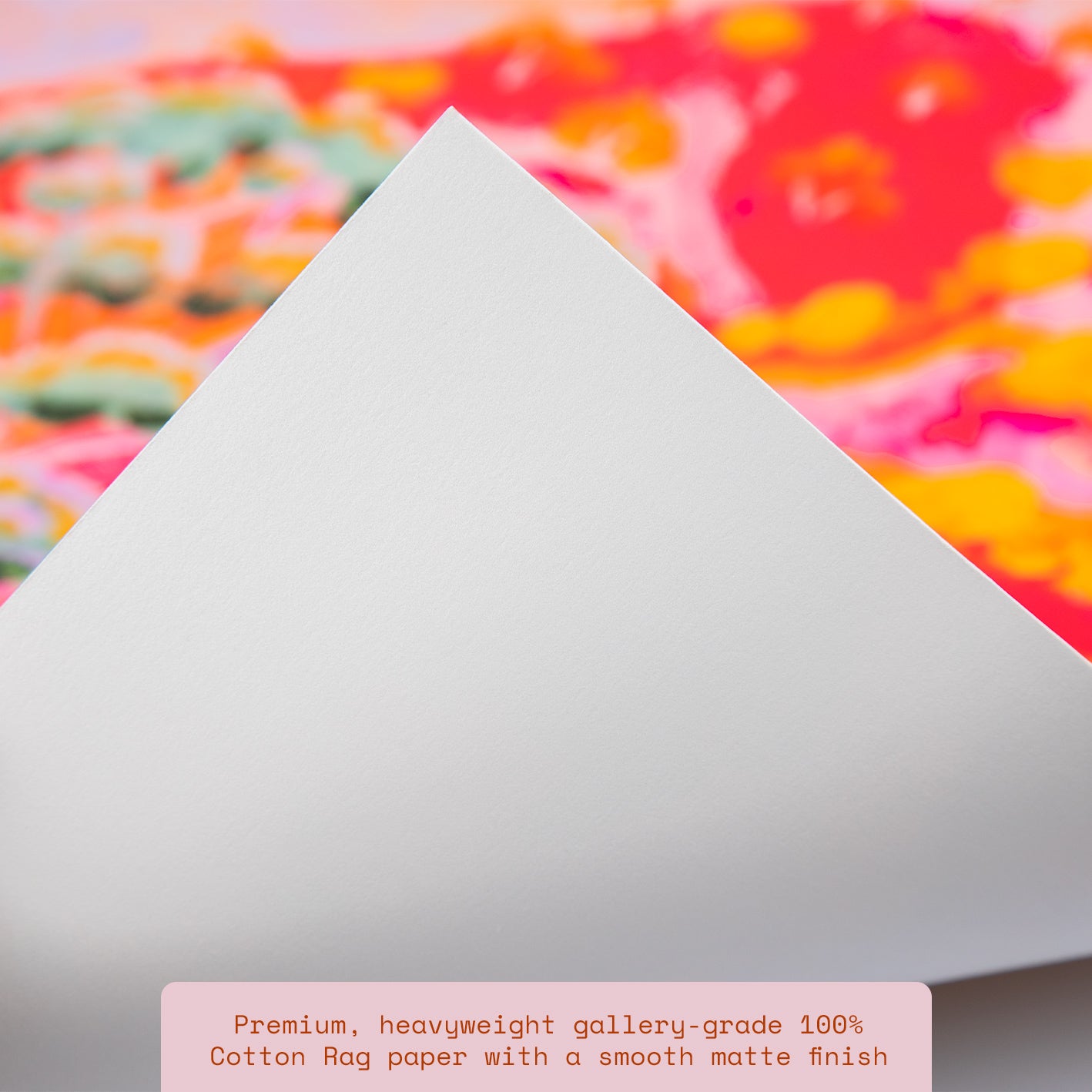 Paper prints are produced on premium, heavyweight gallery-grade 100% Cotton Rag paper with a smooth matte finish. Archival-quality inks ensure exceptional detail, colour accuracy, and long-lasting durability.